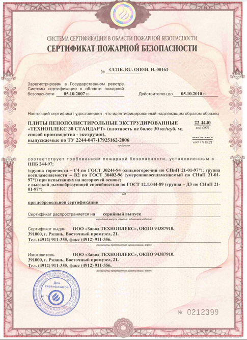 Документ, который подтверждает соответствие продукции установленным требованиям безопасности. Основанием для выдачи сертификата пожарной безопасности в России служит протокол испытаний типовых образцов. Каждому виду товара присущи свои требования и методы сертификационных испытаний. Они описываются в соответствующих ГОСТах и техническом регламенте на ту или иную продукцию.